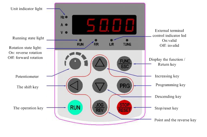 Frequency setting method: Digital setting, analog setting, MODBUS communication setting, Shift between the set combination and set channel.